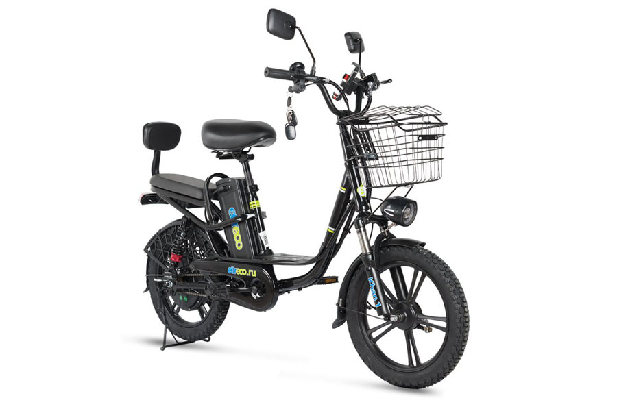 Электровелосипед Eltreco Khan 1 - всесезонная модель, подходящая для частного использования, проката или службы доставки. Мотор позволяет разогнаться до 25 км/ч и проехать расстояние до 50 км на одном заряде, а универсальные колёса 18"х2.5"  - с легкостью преодолевать и городские пробки и бездорожье. Рама изготовлена из прочной стали. Передний барабанный и задний дисковый гидравлический тормоза обеспечивают мгновенную остановку в любых условиях. Данная модель оснащена цветным дисплеем для контроля параметров поездки, вместительной корзиной на руле, яркой светотехникой. Грузоподъёмность - до 140 кг.